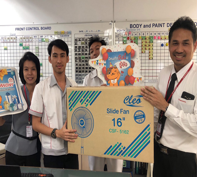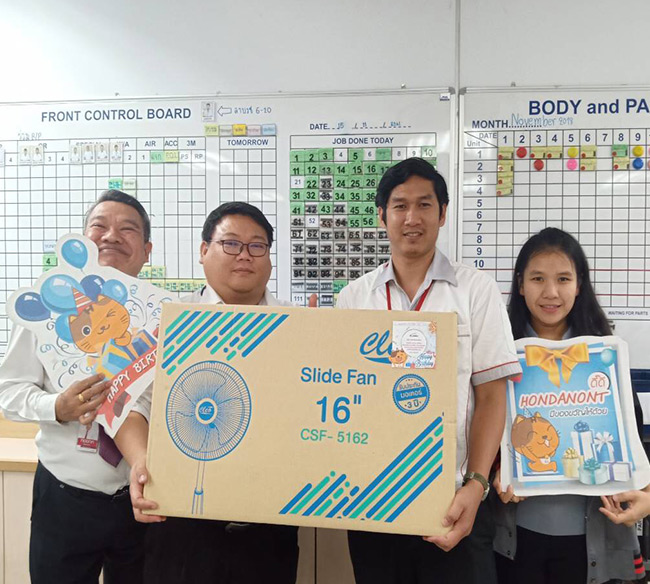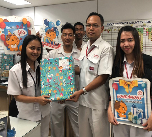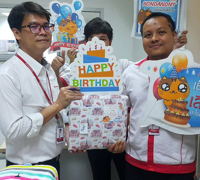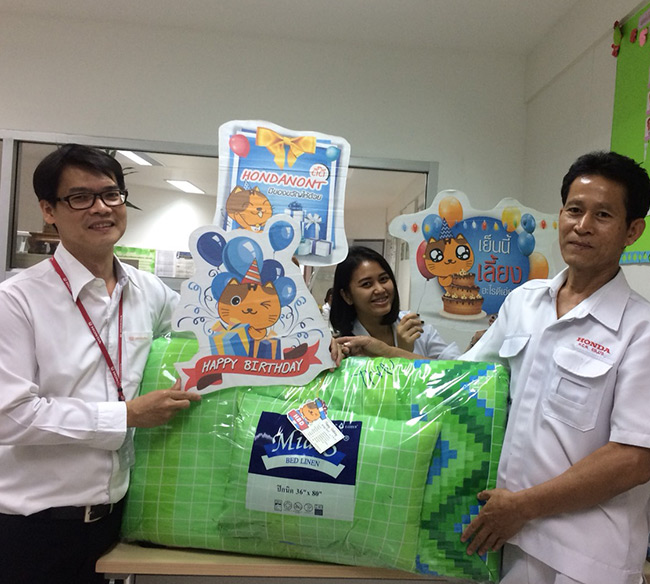 เมื่อเดือน พฤศจิกายน 2561 ที่ผ่านมา กลุ่มฮอนด้านนทบุรีมอบของขวัญให้กับพนักงาน ที่มีวันคล้ายวันเกิดในเดือน พฤศจิกายน 2561 จำนวน 22 คน ขอร่วมอวยพรให้พนักงานทุกท่านมีความสุขมากๆ มีพลังกายที่เข้มแข็ง มีพลังใจที่สมบูรณ์ และร่วมพัฒนาการบริการให้ฮอนด้านนทบุรีเป็นหนึ่งในใจลูกค้าตลอดไป…